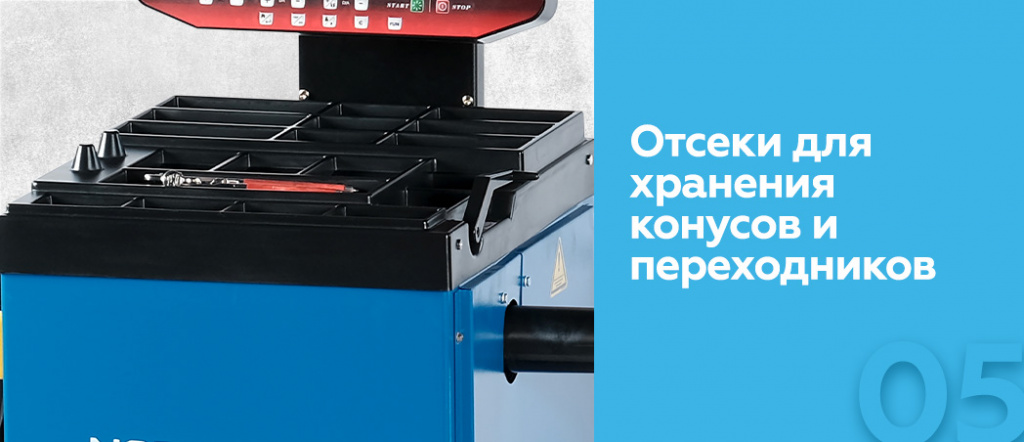 - Отсеки для хранения конусов и переходников